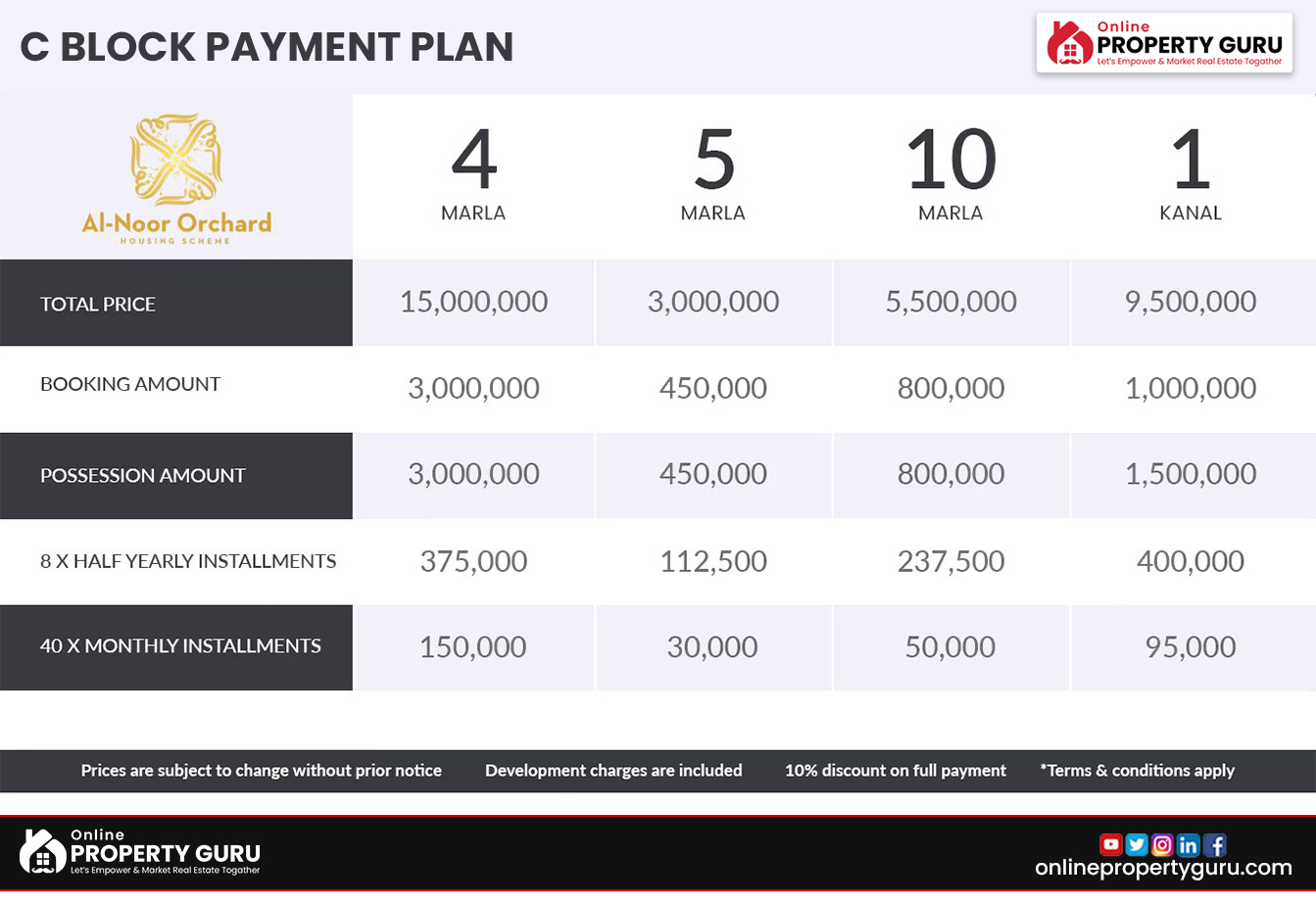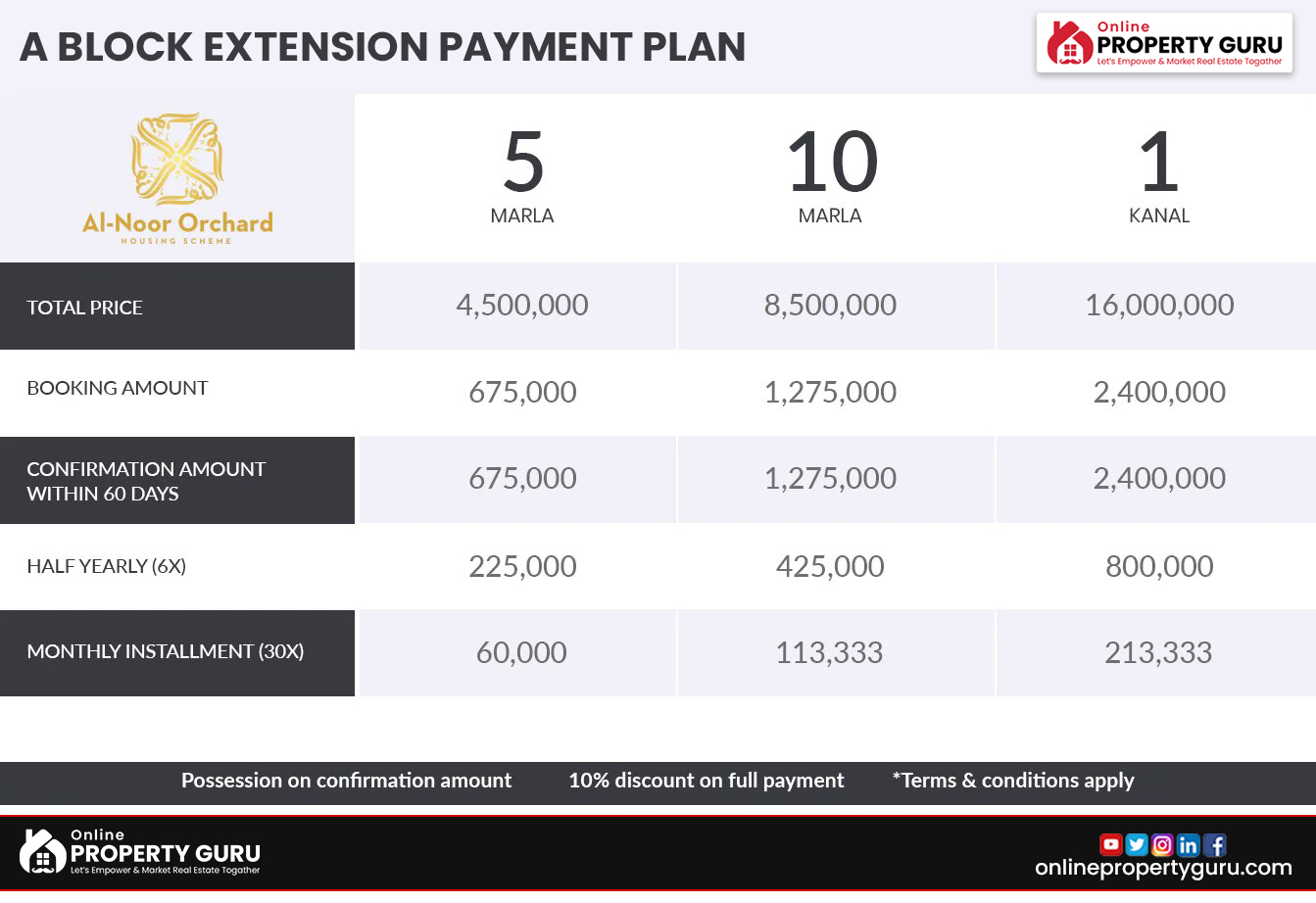 Al Noor Orchard Lahore Payment Plan