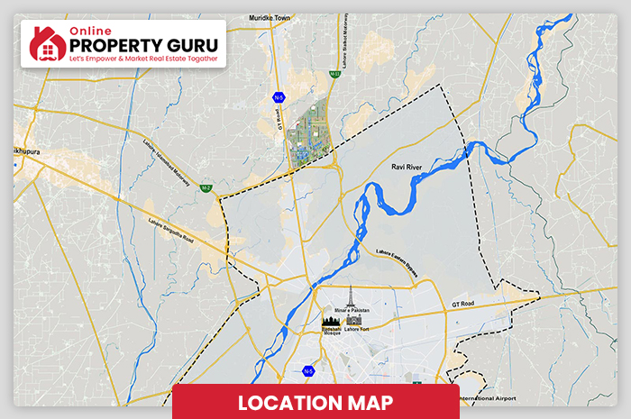 - 0 0-minute drive time from M11 Lahore-Sialkot Motorway.